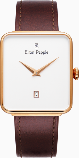 - Strap: Genuine Calfskin Leather, Rose Gold PVD Stainless Steel 316