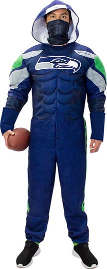Transform into a Seattle Seahawks player with this Game Day costume in team colors. The bodysuit features padded faux muscles, official Seattle Seahawks graphics and a zipper closure for easy dressing. Plus, polyester material creates a soft feel for hours of comfortable wearing.