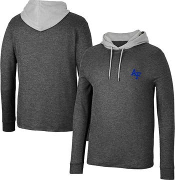 The Men's Colosseum Black Air Force Falcons Ballot Waffle-Knit Thermal Long Sleeve Hoodie T-Shirt is the ultimate way to show unwavering support for the Air Force Falcons. Crafted from soft and durable polyester, this thermal hoodie features embroidered graphics and sublimated fabric that proudly displays the Air Force Falcons logo. The waffle-knit fabric provides warmth and comfort, making it perfect for chilly game days or everyday wear. Whether cheering from the stands or showing team spirit, this hoodie is a must-have for any Air Force Falcons fan.