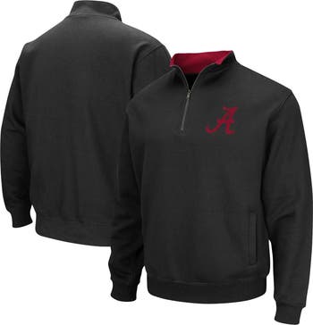 The Men's Colosseum Black Alabama Crimson Tide Tortugas Logo Quarter-Zip Pullover Jacket is the perfect way to show your support for the Alabama Crimson Tide. This midweight jacket is made of a soft cotton and polyester blend and features an embroidered Tortugas logo on the chest. The Olympic collar, rib-knit cuffs and waistband, and two front pockets add to the comfort and style of this jacket. Whether you're cheering on the Crimson Tide at the stadium or relaxing at home, this jacket is sure to keep you warm and comfortable.
