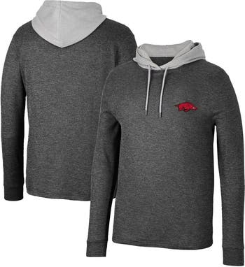 The Men's Colosseum Black Arkansas Razorbacks Ballot Waffle-Knit Thermal Long Sleeve Hoodie T-Shirt is the perfect way to show unwavering support for the Arkansas Razorbacks. This comfortable and stylish hoodie features embroidered fabric applique and a drawstring hood for a snug fit. The sublimated and waffle-knit fabrics add sophistication, making it a must-have for any Razorbacks fan. Whether cheering from the stands or displaying pride, this hoodie is sure to turn heads.
