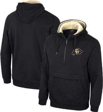 Showcase your unwavering love for Colorado Buffaloes no matter how chilly with this Colosseum half-zip pullover. Offering a toasty midweight construction, fleece lining and a hood, this is the perfect piece to keep warm as you cheer your team to victory. The bold Colorado Buffaloes graphics on the chest and striking colorway ensure your fandom is shown loud and proud.