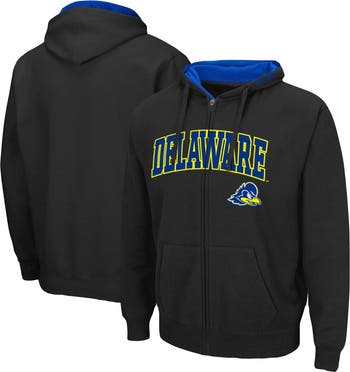 Layer up in a look fit for a true fan with this Arch & Logo 3.0 hoodie. With its bold Delaware Fightin' Blue Hens graphics across the chest complemented by an understated wordmark on the hood, this Colosseum full-zip hoodie has collegiate allegiance in spades. Keep warm with your Delaware Fightin' Blue Hens spirit in this comfortable hoodie.