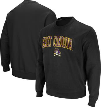 Men's Colosseum Black ECU Pirates Arch & Logo Tackle Twill Pullover Sweatshirt