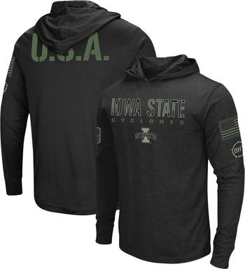 Represent your Iowa State Cyclones in a patriotic way by wearing this OHT Military Appreciation Hoodie T-shirt from Colosseum. It features camo-inspired Iowa State Cyclones graphics on the front and symbols of American pride on the back and right sleeve. You'll show support for more than just your favorite team in this inspiring tee.