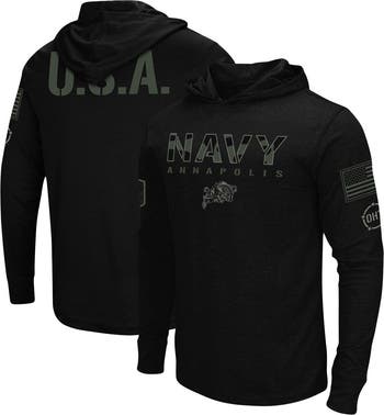 Represent your Navy Midshipmen in a patriotic way by wearing this OHT Military Appreciation Hoodie T-shirt from Colosseum. It features camo-inspired Navy Midshipmen graphics on the front and symbols of American pride on the back and sleeve. You'll show support for more than just your favorite team in this inspiring tee.