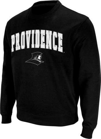 The Men's Colosseum Black Providence Friars Arch & Logo Crew Neck Sweatshirt is the perfect way to show your support for the Providence Friars. Made from a comfortable cotton and polyester blend, this midweight sweatshirt features embroidered graphics that proudly display the Friars' logo and arch. The rib-knit cuffs, collar, and waistband provide a snug fit, while the tackle twill applique adds a touch of style. Whether you're cheering on the Friars at the Dunkin' Donuts Center or just relaxing at home, this sweatshirt is sure to keep you warm and comfortable.