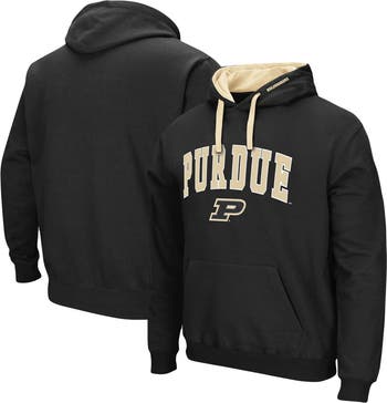 The Men's Colosseum Black Purdue Boilermakers Big & Tall Arch & Logo 2.0 Pullover Hoodie is the ultimate way to show your unwavering support for the Purdue Boilermakers. This midweight hoodie features a cozy fleece lining, perfect for chilly game days. The contrast-color hood lining and drawstring add a touch of style, while the embroidered fabric applique proudly displays the Purdue Boilermakers logo. Whether you're cheering from the stands or simply showing your team spirit, this hoodie is a must-have for any Purdue Boilermakers fan.