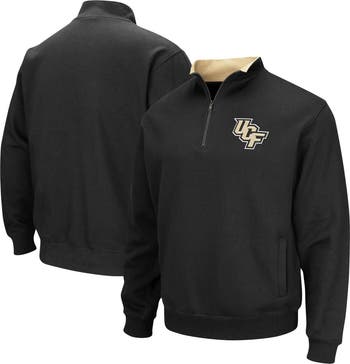 The Men's Colosseum Black UCF Knights Tortugas Logo Quarter-Zip Pullover Jacket is the perfect way to show your support for the UCF Knights. This midweight jacket is made of a soft cotton and polyester blend and features an embroidered Tortugas logo on the chest. The Olympic collar, rib-knit cuffs and waistband, and two front pockets add to the comfort and style of this jacket. Whether you're cheering on the Knights at the game or just showing your support around town, this jacket is sure to keep you warm and comfortable.