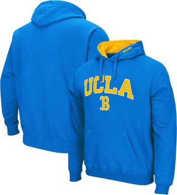 The Men's Colosseum Blue UCLA Bruins Arch & Logo 3.0 Pullover Hoodie is the perfect way to show your unwavering support for the UCLA Bruins. This midweight hoodie features a cozy fleece lining, perfect for chilly game days. The contrast-color hood lining and embroidered fabric applique add a touch of style, while the front pouch pocket provides convenient storage for your essentials. Whether you're cheering from the stands or simply showing your Bruins pride, this hoodie is a must-have for any true fan.