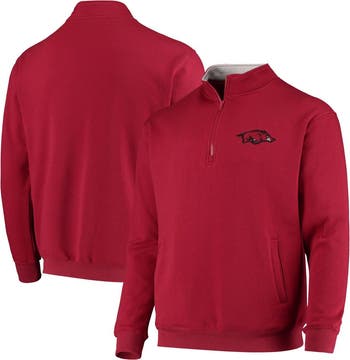 The Men's Colosseum Cardinal Arkansas Razorbacks Tortugas Logo Quarter-Zip Jacket is the perfect way to show your support for the Arkansas Razorbacks. This midweight jacket is made of a soft cotton and polyester blend, making it comfortable to wear all day. The jacket features an embroidered Tortugas logo on the chest, as well as a rib-knit collar, cuffs, and waistband. The two front pockets are perfect for storing your keys, phone, or other small items. Whether you're cheering on the Razorbacks at the game or just relaxing at home, this jacket is sure to keep you warm and comfortable.