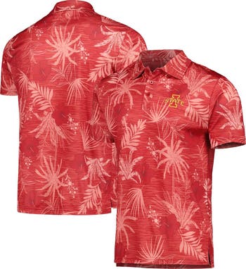 The Men's Colosseum Cardinal Iowa State Cyclones Palms Team Polo is a stylish and comfortable choice for any Cyclones enthusiast. Its embroidered graphics and droptail hem with side splits add a touch of sophistication, while the three-button placket ensures a secure fit. Made from durable polyester, this polo is perfect for showing your support for the Iowa State Cyclones both on and off the field.