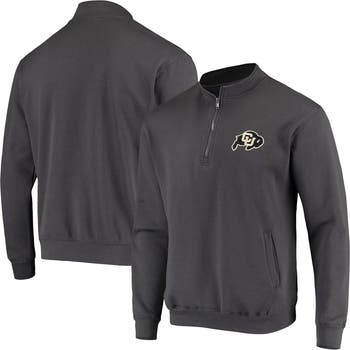 The Men's Colosseum Charcoal Colorado Buffaloes Tortugas Logo Quarter-Zip Jacket is the perfect way to show your support for the Colorado Buffaloes. This midweight jacket is made of a soft cotton and polyester blend, making it comfortable to wear all day. The jacket features an embroidered Tortugas logo on the chest, as well as rib-knit cuffs and waistband for a snug fit. Whether you're cheering on the Buffaloes at the game or just showing your support around town, this jacket is sure to keep you warm and stylish.