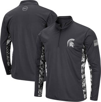 Express your undeniable dedication to the Michigan State Spartans by grabbing this OHT Military Appreciation Digi Camo Quarter-Zip jacket from Colosseum. It features embroidered Michigan State Spartans graphics that coordinate with the camo design down the sides. You'll proudly represent your favorite collegiate squad when you put on this military-inspired piece of outerwear.