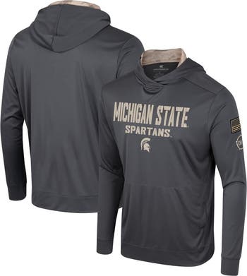 The Men's Colosseum Charcoal Michigan State Spartans OHT Military Appreciation Long Sleeve Hoodie T-Shirt is a testament to your unwavering support for the Spartans. Operation Hat Trick (OHT) generates awareness and support for the recovery of wounded service members and veterans through the sale of branded merchandise and products. Proceeds are donated to select organizations that support the OHT mission. Show your appreciation for the Spartans and the brave men and women who serve our country with this stylish and meaningful hoodie.