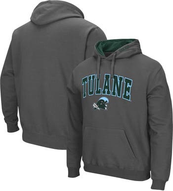 The Men's Colosseum Charcoal Tulane Green Wave Arch and Logo Pullover Hoodie is the perfect way to show your support for the Tulane Green Wave. Made from a soft and comfortable midweight fabric, this hoodie is ideal for moderate temperatures. The front pouch pocket is perfect for storing your essentials, and the drawstring hood will keep you warm and dry on chilly days. The Tulane Green Wave Arch and Logo are proudly displayed on the front, so you can show your team spirit wherever you go.