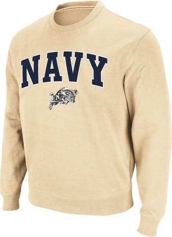 Men's Colosseum Gold Navy Midshipmen Arch & Logo Crew Neck Sweatshirt