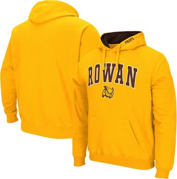 The Men's Colosseum Gold Rowan Profs Arch & Logo 3.0 Pullover Hoodie is the perfect way to show your support for the Rowan Profs. Made from a comfortable cotton and polyester blend, this midweight hoodie features a fleece lining for added warmth during chilly game days. Embroidered fabric applique and contrast-color hood lining proudly display your Rowan Profs pride, while the front pouch pocket provides convenient storage for your essentials. Whether you're cheering from the stands or simply showing your support, this hoodie is the perfect way to represent the Rowan Profs in style.