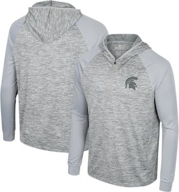 Men's Colosseum Gray Michigan State Spartans Cybernetic Raglan Quarter-Zip Hooded Top