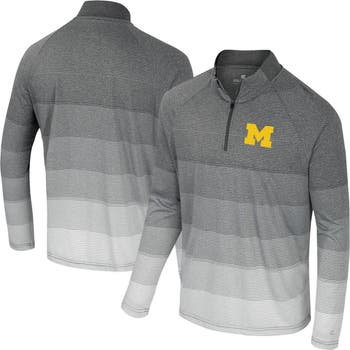 Show your Michigan Wolverines spirit with this Colosseum AI Striped Mesh Quarter-Zip Raglan Windshirt. This windshirt boasts a breathable mesh-like fabric, ensuring you stay cool and comfortable whether you're cheering from the stands or enjoying a sunny day out. The tonal striped design and rubberized team logo on the left chest add a touch of Michigan Wolverines pride to your game day attire.