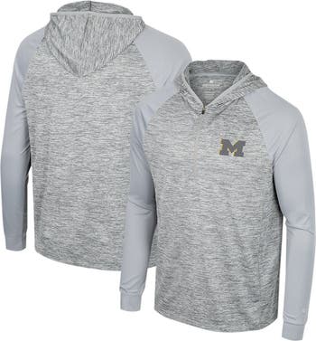 When you need a lightweight layer on game day, grab this quarter-zip Cybernetic top from Colosseum. Understated Michigan Wolverines graphics stand out against an eye-catching pattern. Roomy raglan sleeves offer a natural range of motion, while a hood supplies extra coverage.