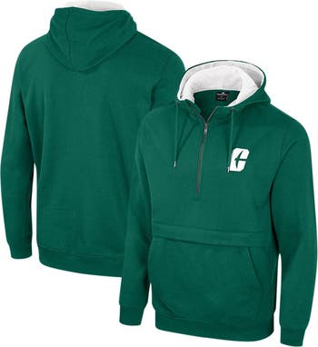 The Men's Colosseum Green Charlotte 49ers Team Half-Zip Pullover Hoodie is the perfect way to show your support for the Charlotte 49ers. Made from a comfortable cotton and polyester blend, this midweight hoodie features a fleece lining for added warmth during chilly game days. Embroidered fabric applique proudly displays the Charlotte 49ers logo, while the front pouch pocket provides convenient storage for your essentials. Whether you're cheering from the stands or simply showing your support, this hoodie is the perfect way to represent the Charlotte 49ers in style.