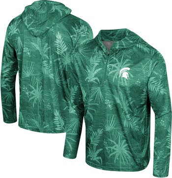 Men's Colosseum Green Michigan State Spartans Palms Printed Lightweight Quarter-Zip Hooded Top