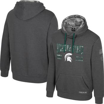 Show off your Michigan State Spartans pride in style with this Operation Hat Trick Squad Hoodie from Colosseum. The midweight design is perfect for moderate temperatures, keeping you comfortable without overheating, while the drawstring hood and rib-knit cuffs help you find your ideal fit. The camo pattern on the team logo graphic and hood lining adds a stylish touch to your school spirit, making this an eye-catching addition to your wardrobe.