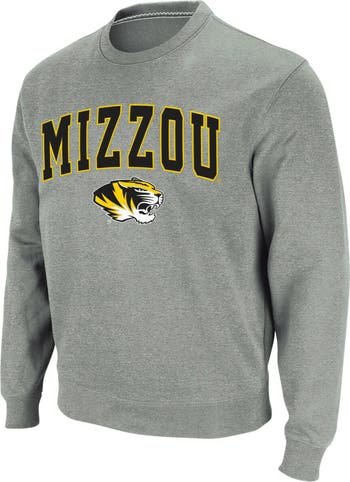Men's Colosseum Heather Gray Missouri Tigers Arch & Logo Crew Neck Sweatshirt
