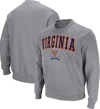 The Men's Colosseum Heather Gray Virginia Cavaliers Arch & Logo Pullover Sweatshirt is the perfect way to show your unwavering support for the Virginia Cavaliers. Crafted from a cozy cotton and polyester blend, this midweight sweatshirt features embroidered fabric applique and graphics that proudly display the Cavaliers' iconic arch and logo. Whether you're cheering from the stands or simply showing your team spirit, this sweatshirt is a must-have for any Virginia Cavaliers fan.