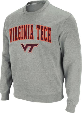 Men's Colosseum Heather Gray Virginia Tech Hokies Arch & Logo Crew Neck Sweatshirt
