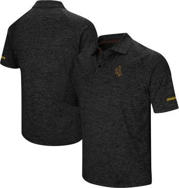 Men's Colosseum Heathered Black Wyoming Cowboys Primary Logo Down Swing Raglan Polo