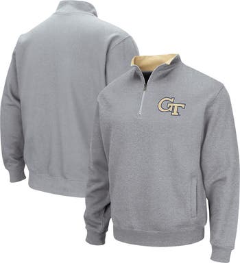 The Men's Colosseum Heathered Gray Georgia Tech Yellow Jackets Tortugas Team Logo Quarter-Zip Jacket is the perfect way to show your support for the Georgia Tech Yellow Jackets. This midweight jacket is made of a soft cotton and polyester blend, and features a fleece lining for added warmth. The embroidered Tortugas team logo on the chest shows your Georgia Tech Yellow Jackets pride, while the two front pockets provide convenient storage for your essentials. Whether you're cheering on the Yellow Jackets at the game or just relaxing at home, this jacket is sure to keep you comfortable and stylish.