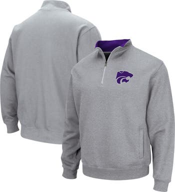 The Men's Colosseum Heathered Gray Kansas State Wildcats Tortugas Team Logo Quarter-Zip Jacket is the perfect way to show your support for the Kansas State Wildcats. This midweight jacket is made of a soft cotton and polyester blend, and features a fleece lining for added warmth. The embroidered Tortugas team logo on the chest shows your Kansas State Wildcats pride, while the two front pockets provide convenient storage for your essentials. Whether you're cheering on the Wildcats at the game or just relaxing at home, this jacket is sure to keep you comfortable and stylish.