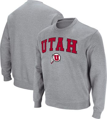 Men's Colosseum Heathered Gray Utah Utes Arch & Logo Tackle Twill Pullover Sweatshirt