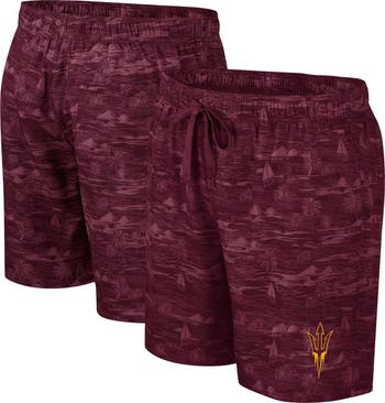 Carry your Arizona State Sun Devils pride with you as you vacation by sporting these Colosseum Ozark swim shorts. An interior mesh lining promotes breathability, while an elastic waistband adjusts the fit to your perfect size. An eye-catching pattern adds flair to the classic Arizona State Sun Devils graphics for a spirited poolside look.