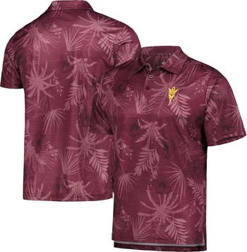 The Men's Colosseum Maroon Arizona State Sun Devils Palms Team Polo is a stylish and comfortable choice for any Sun Devils enthusiast. Its embroidered graphics and droptail hem with side splits add a touch of sophistication, while the three-button placket ensures a secure fit. Made from durable polyester, this polo is perfect for showing your support for the Arizona State Sun Devils both on and off the field.