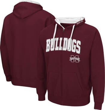 The Men's Colosseum Maroon Mississippi State Bulldogs Big & Tall Full-Zip Hoodie is the perfect way to show your support for the Mississippi State Bulldogs. Made from a comfortable cotton and polyester blend, this midweight jacket features a fleece lining for added warmth during chilly game days. Embroidered fabric applique and contrast-color hood lining add a touch of style, while the hood with drawstring and rib-knit cuffs and waistband ensure a snug fit. Whether you're cheering from the stands or simply showing your support, this hoodie is the perfect way to represent the Mississippi State Bulldogs in style.