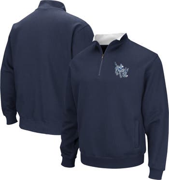 The Men's Colosseum Navy Colorado School of Mines Orediggers Tortugas Quarter-Zip Top is the perfect way to show your support for the Orediggers. Made from a comfortable cotton and polyester blend, this midweight sweatshirt features a fleece lining for added warmth during chilly game days. Embroidered graphics proudly display your allegiance, while the Olympic collar and two front pockets add a touch of style. Whether you're cheering from the stands or simply showing your support, this top is the perfect way to represent the Colorado School of Mines Orediggers in style.