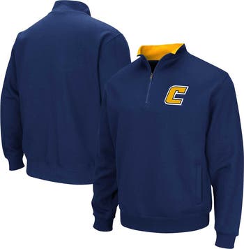 The Men's Colosseum Navy Tennessee Chattanooga Mocs Tortugas Quarter-Zip Sweatshirt is the perfect way to show your support for the Tennessee Chattanooga Mocs. Made from a comfortable cotton and polyester blend, this midweight sweatshirt features a fleece lining for added warmth during chilly game days. Embroidered fabric applique and screen print graphics proudly display your Tennessee Chattanooga Mocs pride, while the Olympic collar and two front pockets add a touch of style and functionality. Whether you're cheering from the stands or simply showing your support, this sweatshirt is the perfect way to represent the Tennessee Chattanooga Mocs in style.