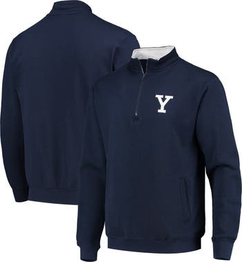 The Men's Colosseum Navy Yale Bulldogs Tortugas Logo Quarter-Zip Jacket is the perfect way to show your support for the Yale Bulldogs. This midweight jacket is made of a comfortable polyester and cotton blend, featuring an embroidered Tortugas logo on the chest. The Olympic collar, rib-knit cuffs and waistband, and two front pockets enhance comfort and style. Whether cheering on the Bulldogs at the game or showcasing your support around town, this jacket ensures warmth and style.