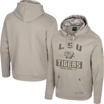 This Operation Hat Trick (OHT) Battalion Hoodie is an effective way to showcase your support for the LSU Tigers while simultaneously honoring our nation's service members. A key mission of OHT is to generate awareness and funding for the recovery of wounded veterans and service members through the sale of branded merchandise like this sweatshirt. Built to withstand cold temperatures (290gsm), this heavyweight hoodie includes practical features such as front zipper pockets and an adjustable drawstring hood. Your allegiance is clearly displayed through fabric appliqus of the team name, logo, city, and state. Additionally, embroidered American flag and graphic appliques on the sleeves represent profound patriotic pride.