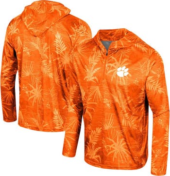 Look equally ready to cheer on your favorite team or kick back on the nearest beach in this Clemson Tigers Palms Printed quarter-zip top. Designed by Colosseum, it features an eye-catching sublimated design and your favorite school's logo. The lightweight material and hood make this a perfect option when mild weather rolls through on a Clemson Tigers game day.