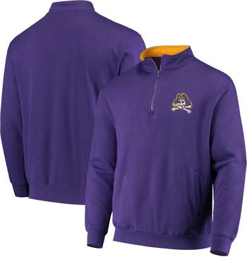 The Men's Colosseum Purple ECU Pirates Tortugas Logo Quarter-Zip Jacket is the perfect way to show your support for the ECU Pirates. This midweight jacket is made of a soft cotton and polyester blend and features an embroidered Tortugas logo on the chest. It also has a fleece lining to keep you warm on chilly game days. Whether you're cheering on the Pirates at the stadium or just showing your support around town, this jacket is sure to turn heads.