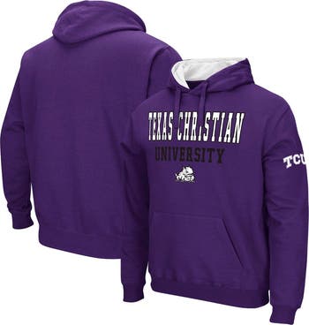 The Men's Colosseum Purple TCU Horned Frogs Sunrise Pullover Hoodie is the perfect way to show your support for the TCU Horned Frogs. Made from a comfortable cotton and polyester blend, this midweight hoodie features a fleece lining for added warmth during chilly game days. Embroidered fabric applique and a contrast-color hood lining add a touch of style, while the front pouch pocket provides convenient storage for your essentials. Whether you're cheering from the stands or simply showing your support, this hoodie is the perfect way to represent the TCU Horned Frogs in style.