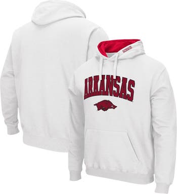Men's Colosseum White Arkansas Razorbacks Arch & Logo 3.0 Pullover Hoodie