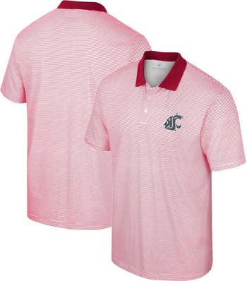 The Men's Colosseum White/Crimson Washington State Cougars Print Stripe Polo is a stylish and comfortable choice for any Cougars fan. Its embroidered fabric applique and three-button placket add a touch of sophistication, while the side splits at the hem provide a relaxed fit. Made from a blend of cotton and polyester, this polo is perfect for showing your support for the Washington State Cougars both on and off the field.
