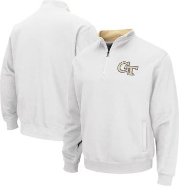 The Men's Colosseum White Georgia Tech Yellow Jackets Tortugas Logo Quarter-Zip Jacket is the perfect way to show your support for the Georgia Tech Yellow Jackets. This midweight jacket is made of a soft cotton and polyester blend and features an embroidered Tortugas logo on the chest. The jacket also has a fleece lining to keep you warm on chilly game days. Whether you're cheering on the Yellow Jackets from the stands or just showing your support around town, this jacket is a must-have for any fan.
