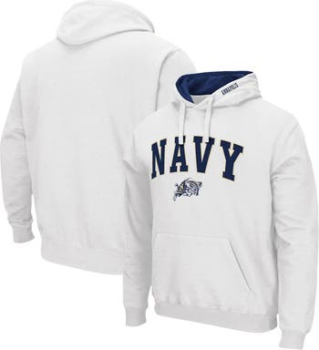 Men's Colosseum White Navy Midshipmen Arch & Logo 3.0 Pullover Hoodie
