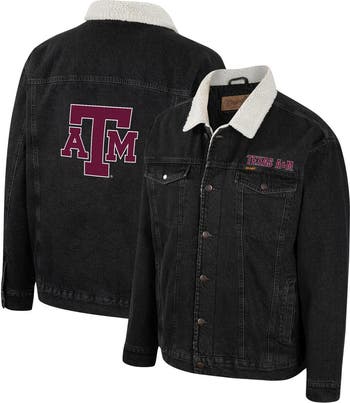 This button-up denim jacket from the Colosseum x Wrangler collection is a great layer to sport on game day. It features an understated Texas A&M Aggies wordmark above the left chest pocket and a bold logo on the back for a spirited look. A heavyweight design and Sherpa lining help to sustain warmth and comfort, while loads of pockets provide storage.